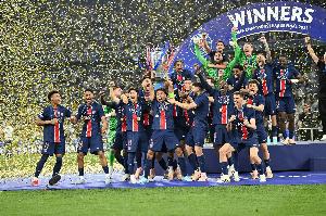 体育资讯6月1日讯 欧冠决赛,巴黎5-0击败国米,捧起冠军奖杯。