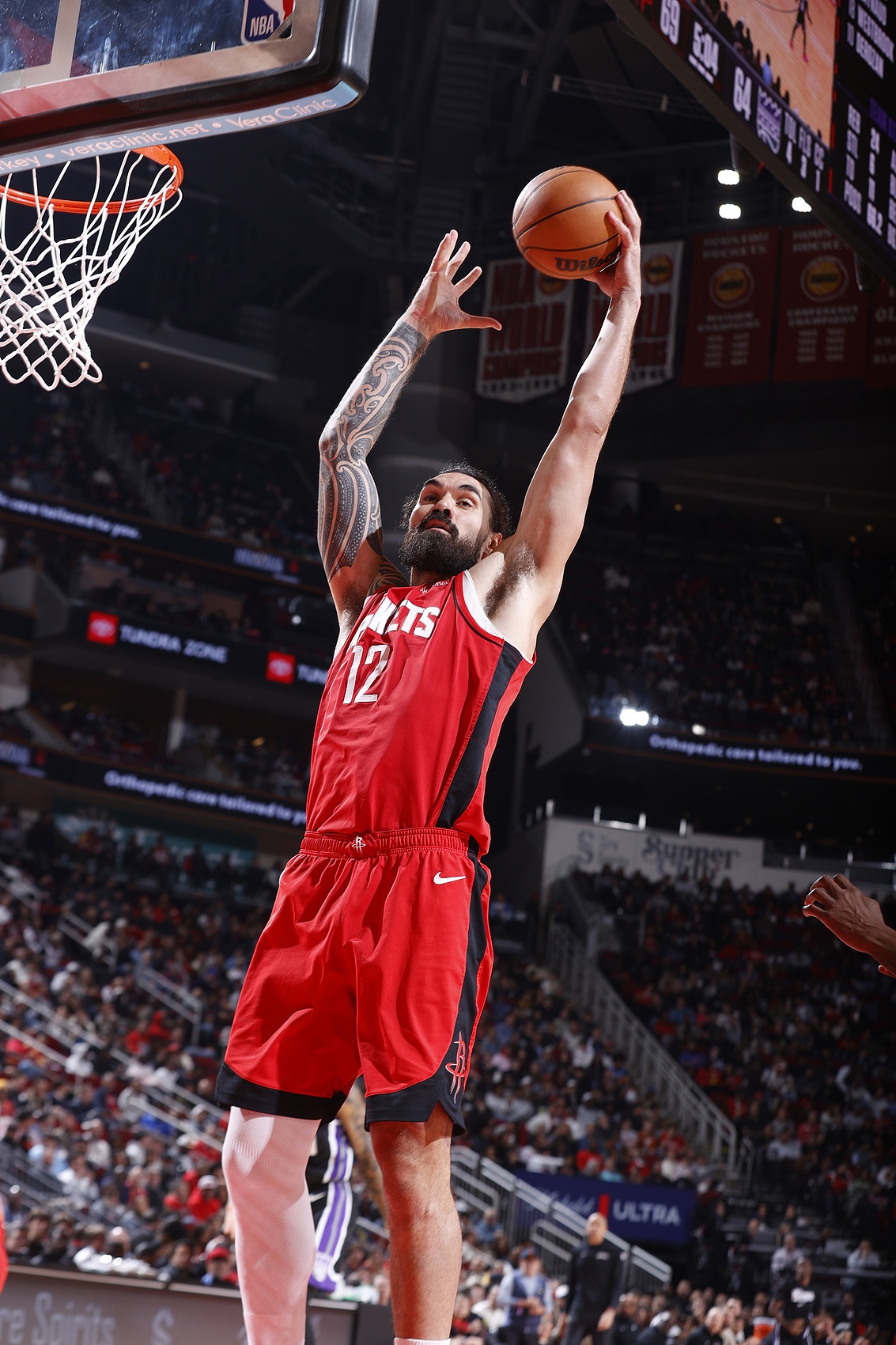 仅从数据统计上看,火箭牢牢控制了比赛中最重要的生命线之一。他们在篮板球争夺上以57-38取得了压倒性胜利,尤其是在进攻篮板上更是彻底碾压了开拓者——火箭全场抢下24个进攻篮板,而对手仅有6个。史蒂文·亚当斯、塔里·伊森和阿门·汤普森在篮下翻江倒海,持续不断地为球队拼抢出二次甚至三次进攻的机会。