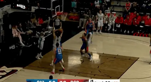 虎扑01月17日讯 G联赛,撕裂之城混音队对阵俄克拉荷马城蓝色队的比赛正在进行中。